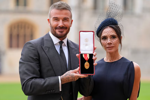 David Beckham se convirtió en caballero inspirado por el rey Carlos y con un traje diseñado por su esposa, Victoria